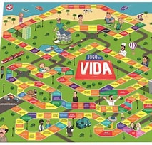 Os jogadores percorrem a vida escolhendo carreira, investimentos e decisões pessoais.